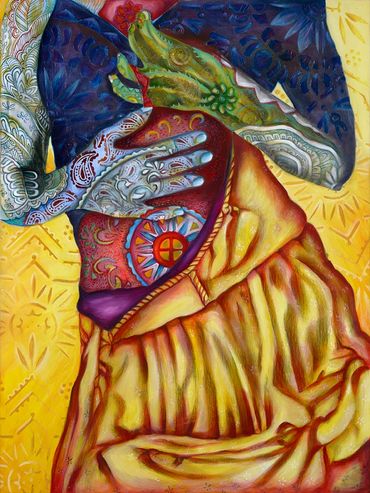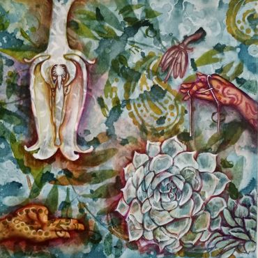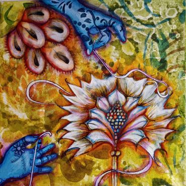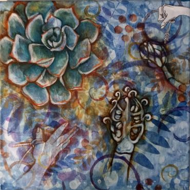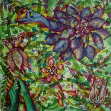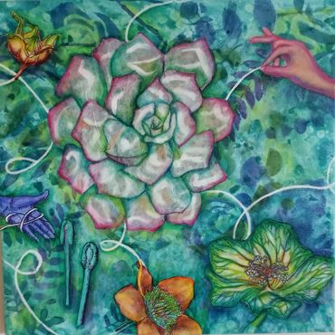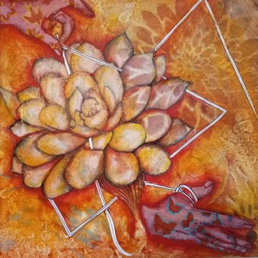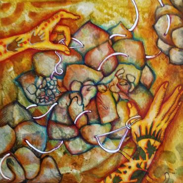 This series was created during the Covid-19 pandemic in 2020 -2021. As the world focused on staying 'safe' during the prolonged lock-down of year #1 of the virus, so many of us turned to Mother Nature for guidance and solace. One of the blessings of Covid has been to re-direct our priorities to spending more time with people we love outdoors. As my family & I spent more & more time in parks, on nature trails and simply walking Tucson neighborhoods, these images of how much each of us is connected, both to each other and through nature , emerged in my studio. Although Covid brought so much loss, grief and horror, the virus has also gifted us with renewed commitment to shifting how we, as humans, continue to improve the ways we steward the Earth and Her resources.