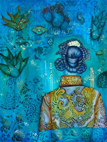 This series began in 2005 as an homage to Chicago painter, ED PASCHKE. When he passed away from cancer, in his early 60's, I was moved to begin what has evolved into an on-going body of work centering on Archetypal Feminine figures relating to elements of the natural world.
